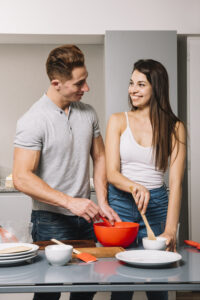 man-helping-woman-with-cooking-food